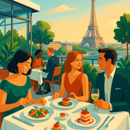 * Jetzt kann Peter das Abendessen mit seinen Freunden im ADMO aux Ombres Paris genießen!