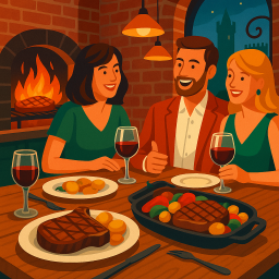 * Jetzt kann Peter das Abendessen mit seinen Freunden im Al Punto Cáceres - Steak House & Bar genießen!