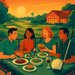 * Jetzt kann Peter das Abendessen mit seinen Freunden im Arrowhead Golf Club Wheaton genießen!
