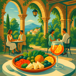 Nehmen wir an, Peter hat einen großartigen Morgen und beschließt, seine drei Freunde am selben Tag um 18 Uhr ins Bar & Chiostro Taormina einzuladen.
