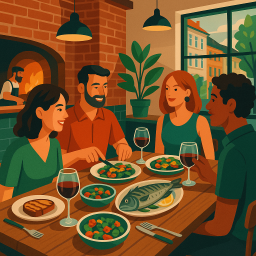 * Jetzt kann Peter das Abendessen mit seinen Freunden im Barra Berlin genießen!