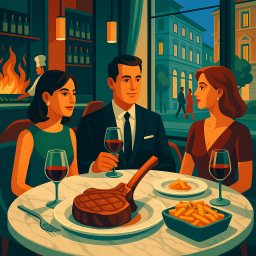 * Jetzt kann Peter das Abendessen mit seinen Freunden im Beefbar Milano genießen!