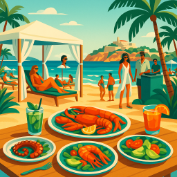 We came to Blue Marlin for an early dinner on a Sunday around 4:30 PM before heading to the club, and wow--such a vibe! The setup is amazing: there's a beach section with daybeds where you could easily spend the entire day, a restaurant area, an