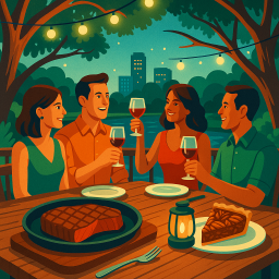 * Jetzt kann Peter das Abendessen mit seinen Freunden im Brenner's on the Bayou Houston genießen!