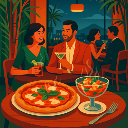 * Jetzt kann Peter das Abendessen mit seinen Freunden im Brutto El Salvador genießen!