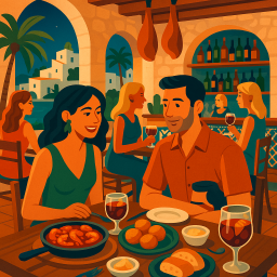 * Jetzt kann Peter das Abendessen mit seinen Freunden im Can Pou Bar Eivissa genießen!