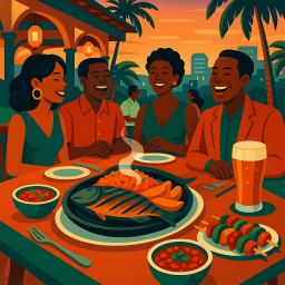 * Jetzt kann Peter das Abendessen mit seinen Freunden im Chez Amis Bar and Grill Accra genießen!
