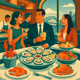 * Jetzt kann Peter das Abendessen mit seinen Freunden im Clam Bar Sydney genießen!