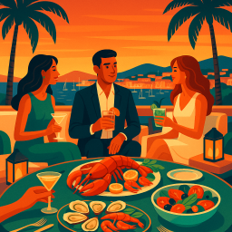 * Jetzt kann Peter das Abendessen mit seinen Freunden im Cloud 9 Cannes genießen!