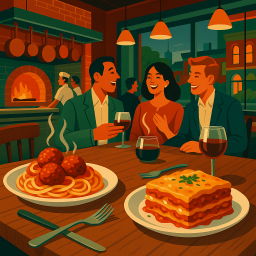 * Jetzt kann Peter das Abendessen mit seinen Freunden im DeNucci's Highland Park genießen!