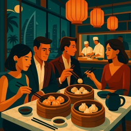 * Jetzt kann Peter das Abendessen mit seinen Freunden im Din Tai Fung - The Galleria Mall Abu Dhabi genießen!