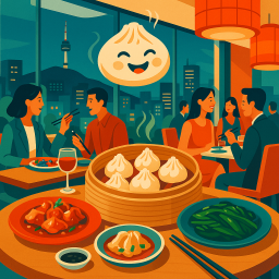 * Jetzt kann Peter das Abendessen mit seinen Freunden im Din Tai Fung Yeongdeungpo Times Square genießen!