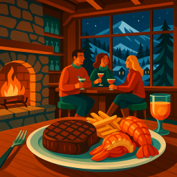 * Jetzt kann Peter das Abendessen mit seinen Freunden im Elway's Vail genießen!