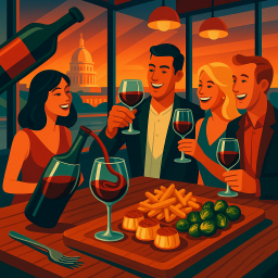 * Jetzt kann Peter das Abendessen mit seinen Freunden im Eno Vino Downtown Madison genießen!