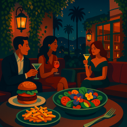 * Jetzt kann Peter das Abendessen mit seinen Freunden im Firefly Los Angeles genießen!