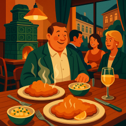 * Jetzt kann Peter das Abendessen mit seinen Freunden im Gasthaus Rebhuhn Wien genießen!