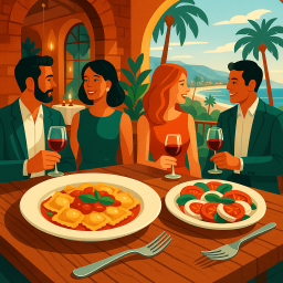 * Jetzt kann Peter das Abendessen mit seinen Freunden im Giorgio Baldi Santa Monica genießen!