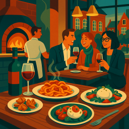 * Jetzt kann Peter das Abendessen mit seinen Freunden im Giulia Cambridge genießen!