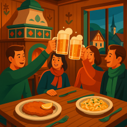 * Jetzt kann Peter das Abendessen mit seinen Freunden im Goldener Stern Friedberg genießen!