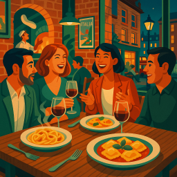 * Jetzt kann Peter das Abendessen mit seinen Freunden im Grasso London genießen!