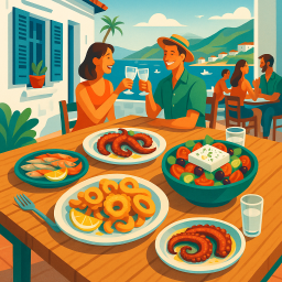 * Jetzt kann Peter das Abendessen mit seinen Freunden im Harris Apitiki genießen!