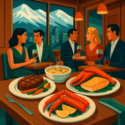 * Jetzt kann Peter das Abendessen mit seinen Freunden im Haute Quarter Grill Anchorage genießen!