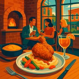 * Jetzt kann Peter das Abendessen mit seinen Freunden im Heirloom at The 1907 Rogers genießen!
