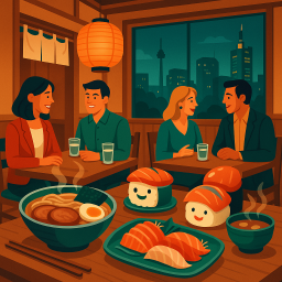 * Jetzt kann Peter das Abendessen mit seinen Freunden im Higematsu Frankfurt am Main genießen!