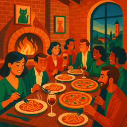 * Jetzt kann Peter das Abendessen mit seinen Freunden im Il Gatto che Ride Solarolo genießen!
