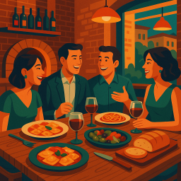 * Jetzt kann Peter das Abendessen mit seinen Freunden im Il Ombu Trattoria Italiana Buenos Aires genießen!