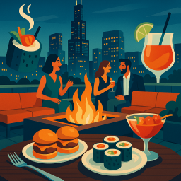 * FluffyStar64 nutzt nun seine Kontakte im IO Godfrey Rooftop Lounge Chicago, um den Tisch zu sichern.