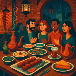 * Jetzt kann Peter das Abendessen mit seinen Freunden im Istanbul Restaurant Herefordshire genießen!