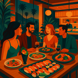 * Jetzt kann Peter das Abendessen mit seinen Freunden im KinKan LA Los Angeles genießen!