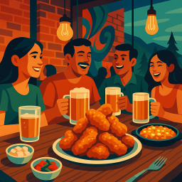 * Jetzt kann Peter das Abendessen mit seinen Freunden im Kocodak Chicken & Bar Maple Ridge genießen!