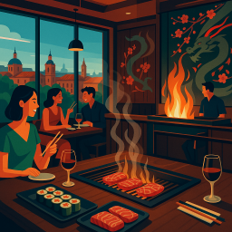 * Jetzt kann Peter das Abendessen mit seinen Freunden im KŌTE: Korean and Japanese BBQ Madrid genießen!
