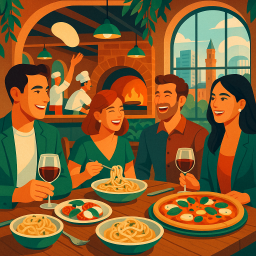 * Jetzt kann Peter das Abendessen mit seinen Freunden im La Bellezza Birmingham genießen!