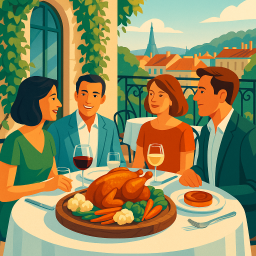 * Jetzt kann Peter das Abendessen mit seinen Freunden im La Villa Borgo - Hôtel Restaurant Champagne-au-Mont-d'Or genießen!