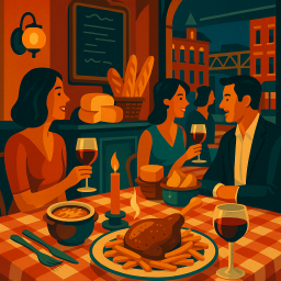 * Jetzt kann Peter das Abendessen mit seinen Freunden im Le Bouchon Chicago genießen!