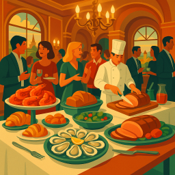 * Jetzt kann Peter das Abendessen mit seinen Freunden im Le Grand Buffet Saint-Bonnet-de-Mure genießen!