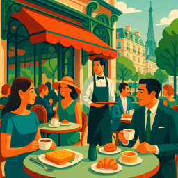 * Jetzt kann Peter das Abendessen mit seinen Freunden im Le Grand Café Paris genießen!