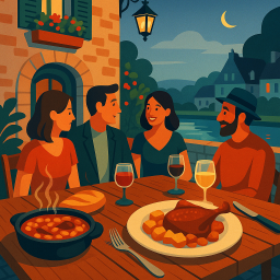 Nehmen wir an, Peter hat einen großartigen Morgen und beschließt, seine drei Freunde am selben Tag um 18 Uhr ins Le Relais du Signan Pontivy einzuladen.
