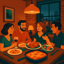 * Jetzt kann Peter das Abendessen mit seinen Freunden im Little Donna's Baltimore genießen!