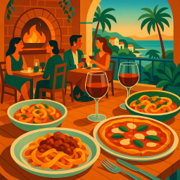 * Jetzt kann Peter das Abendessen mit seinen Freunden im Lucrezia La Jolla San Diego genießen!