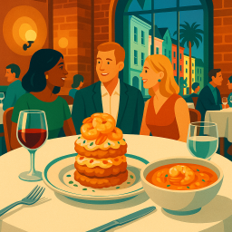 * Jetzt kann Peter das Abendessen mit seinen Freunden im Magnolias Charleston genießen!
