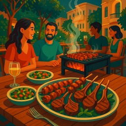 * Jetzt kann Peter das Abendessen mit seinen Freunden im Makom Shel Basar Tel Aviv-Yafo genießen!