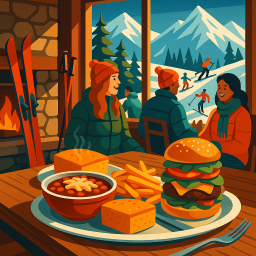 * Jetzt kann Peter das Abendessen mit seinen Freunden im Mammoth Mountain Ski Area genießen!