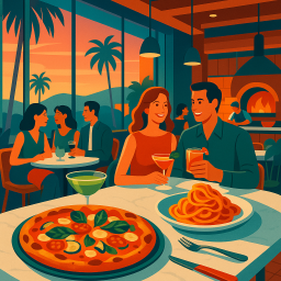 * Jetzt kann Peter das Abendessen mit seinen Freunden im Meteora Los Angeles genießen!