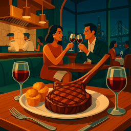 Exquisite location , friendly service , food is beyond "good food" doesn't compare to any steakhouse in SF, the quality is superior.We had the Burger and the Steak accompaniment by the fresh oysters. Easy access to the Chase center to watch