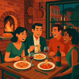 * Jetzt kann Peter das Abendessen mit seinen Freunden im Mothers & Sons Trattoria Durham genießen!
