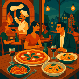 * Jetzt kann Peter das Abendessen mit seinen Freunden im Nona Den Haag genießen!